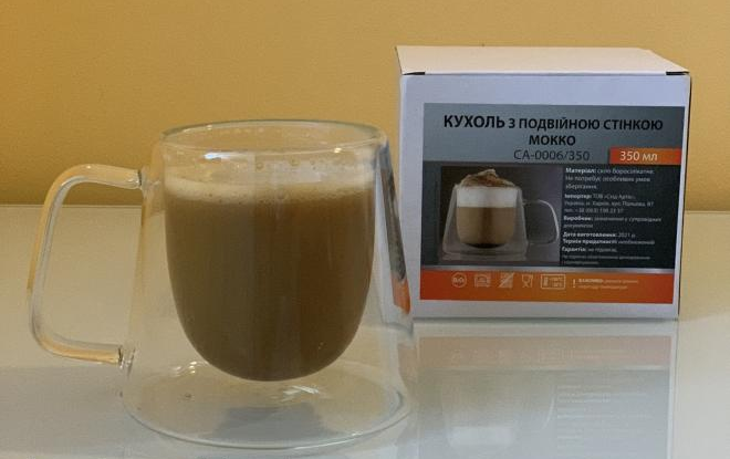 Чашка с двойными стенками, изготовлена из боросиликатного стекла