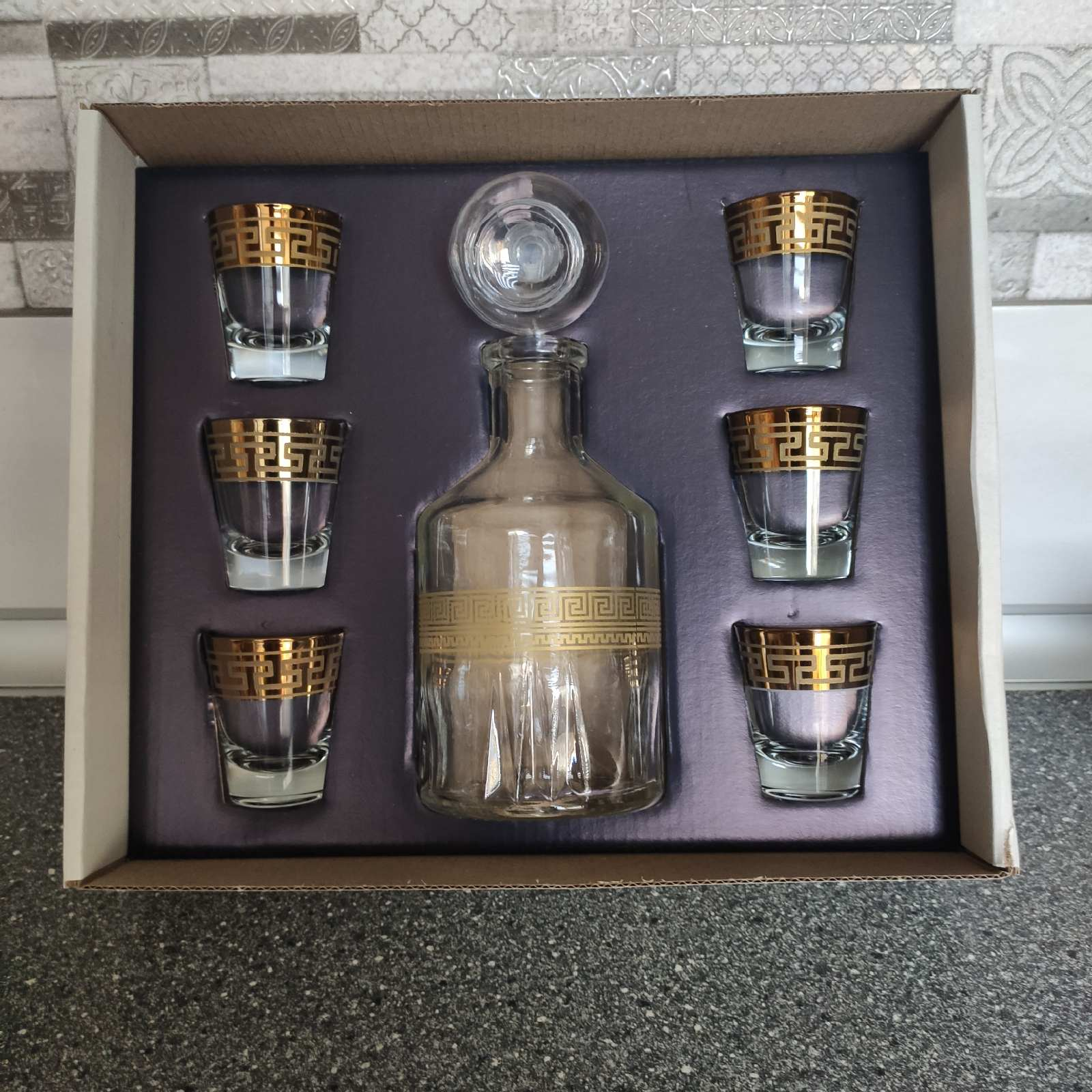 Набор для виски Графин (0.5)+6 стопок (50мл) золотосодержащая деколь Греческий узор