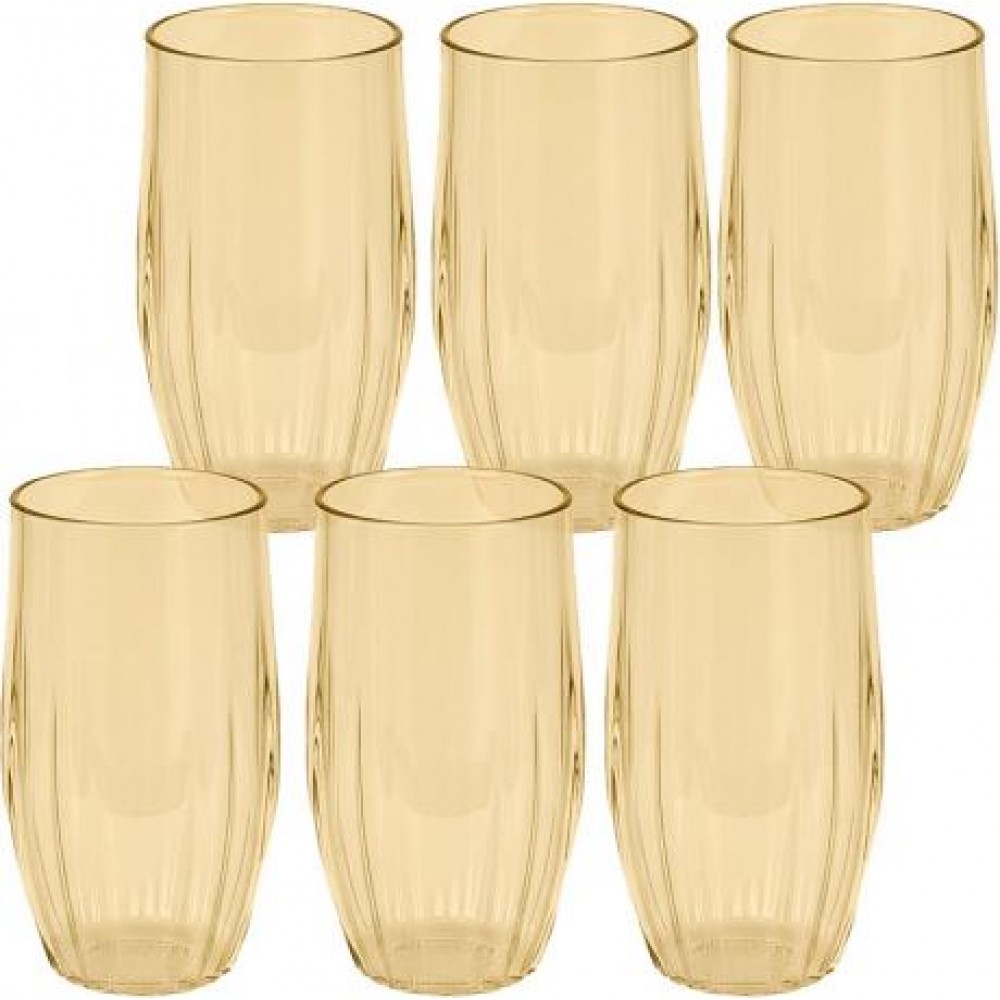 Висока склянка з тонованого скла об’ємом 450 мл з рельєфним вертикальним візерунком. Завдяки стильному золотому відтінку вона стане яскравим акцентом на вашому столі та чудово підійде для подачі води, лимонаду, коктейлів та інших напоїв. Міцне скло стійке до щоденного використання, а потовщене дно забезпечує надійність і довговічність. Елегантний дизайн гармонійно поєднується з класичною та сучасною сервіровкою.