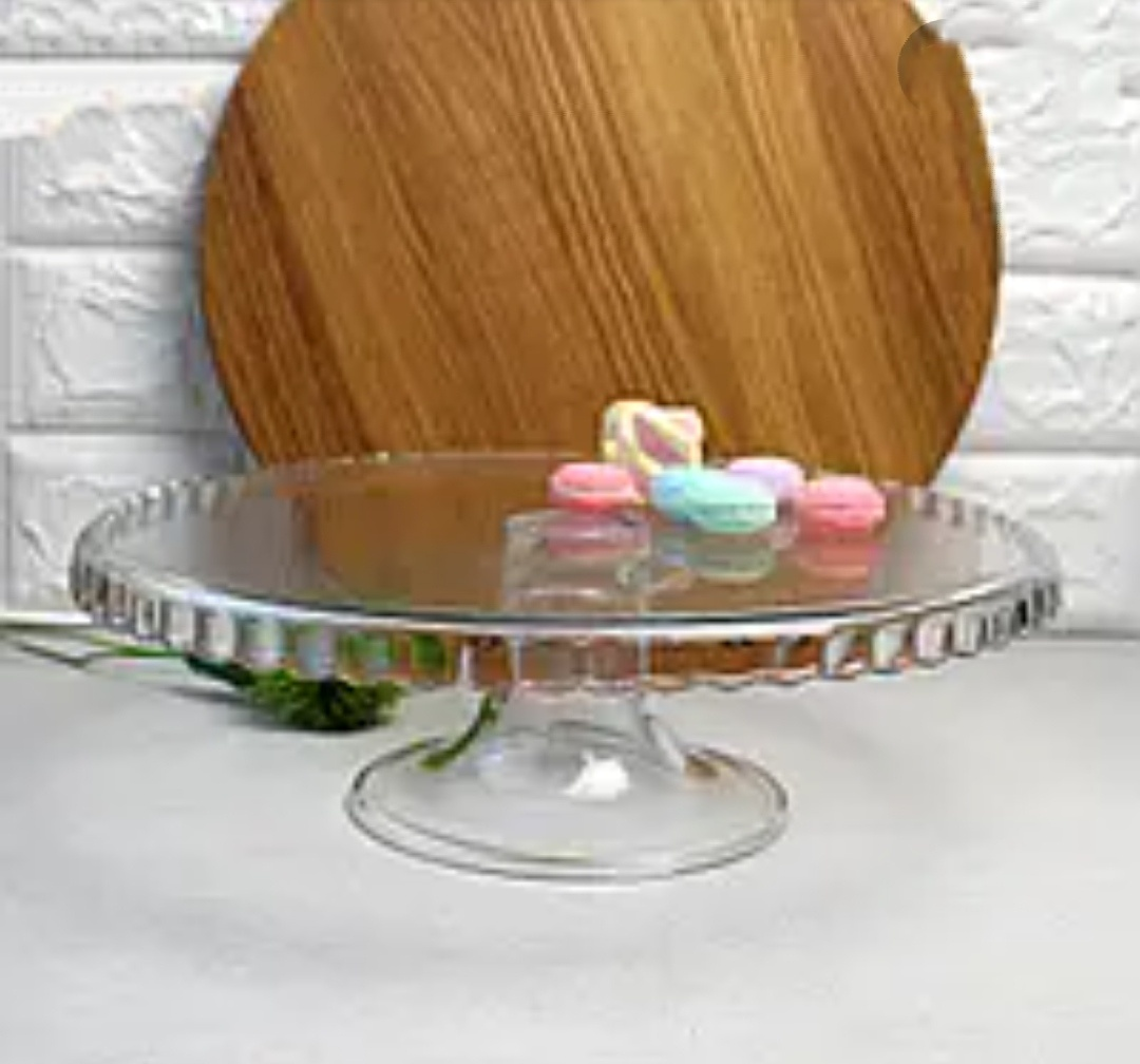 Фруктовница с прозрачного стекла на ножке и золотым ободком(20*8,5см) Crystal