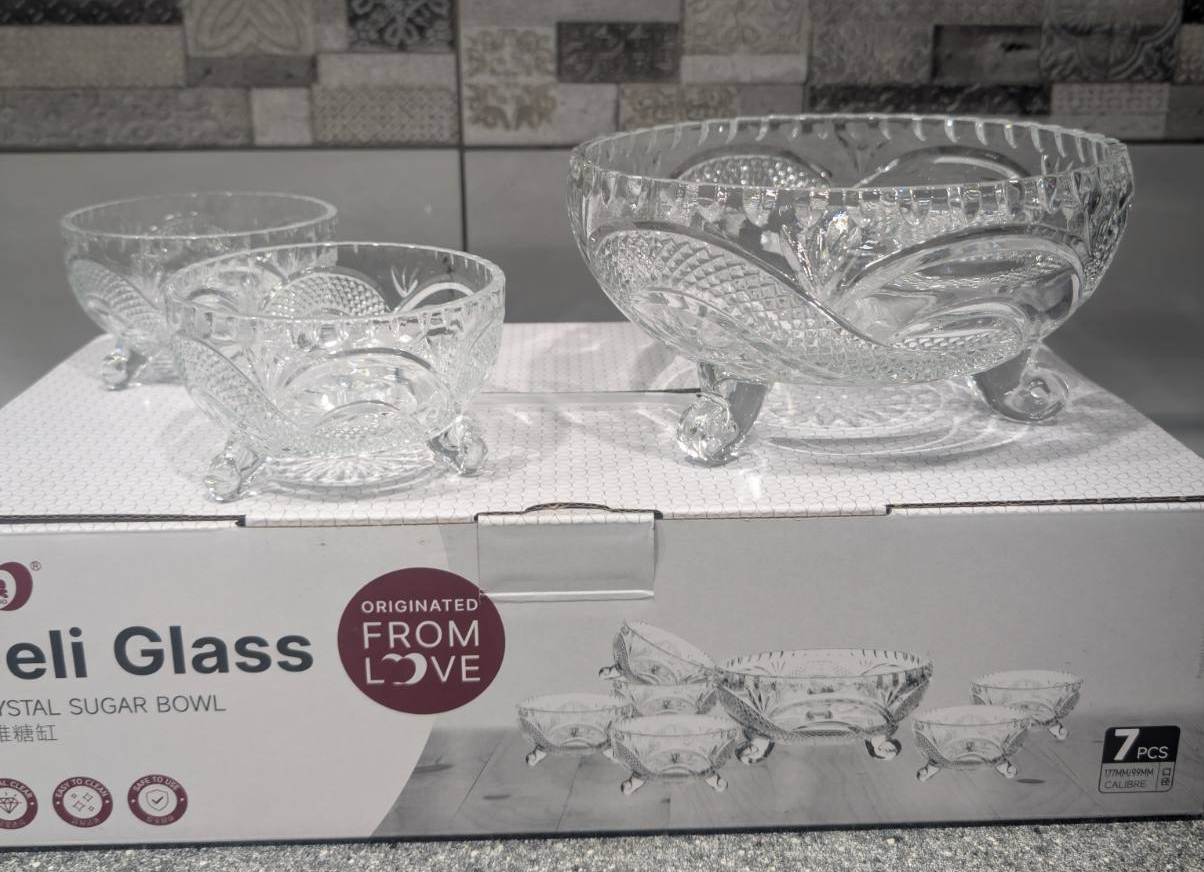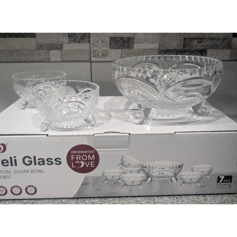 Набор стеклянных салатников под хрусталь на ножках (1 большой (1,8л)+6 маленьких (130мл)