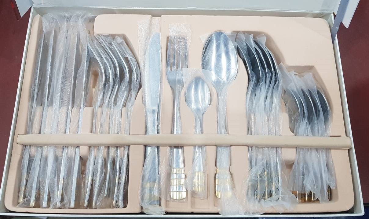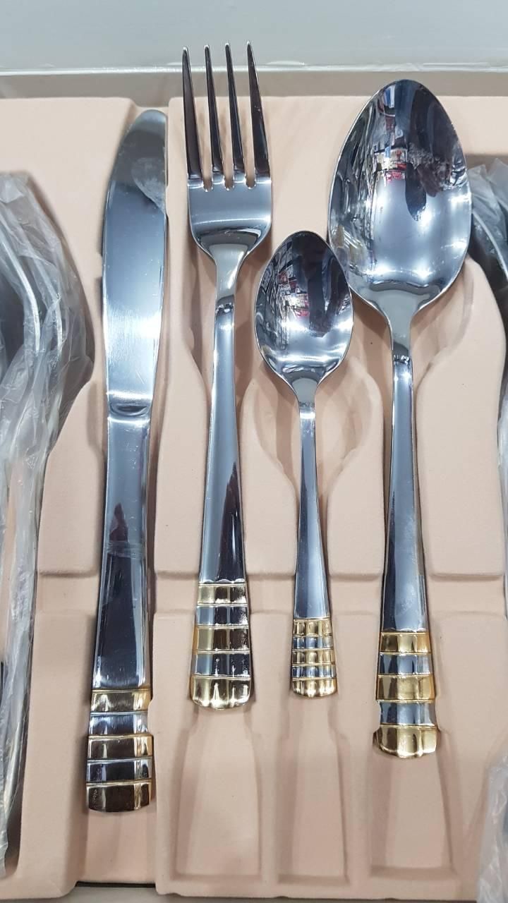 Набор столовых предметов А-Плюс 1415 (24 предмета) выполнен из высококачественной нержавеющей стали. Имеет красивое оформление с позолоченными элементами дизайна. Поставляется в подарочной заводской упаковке. Состав набора: чайные ложки - 6 штук, ложки - 6 штук, вилки - 6 штук, ножи - 6 штук. Отлично подойдут для сервировки стола на 6 персон.