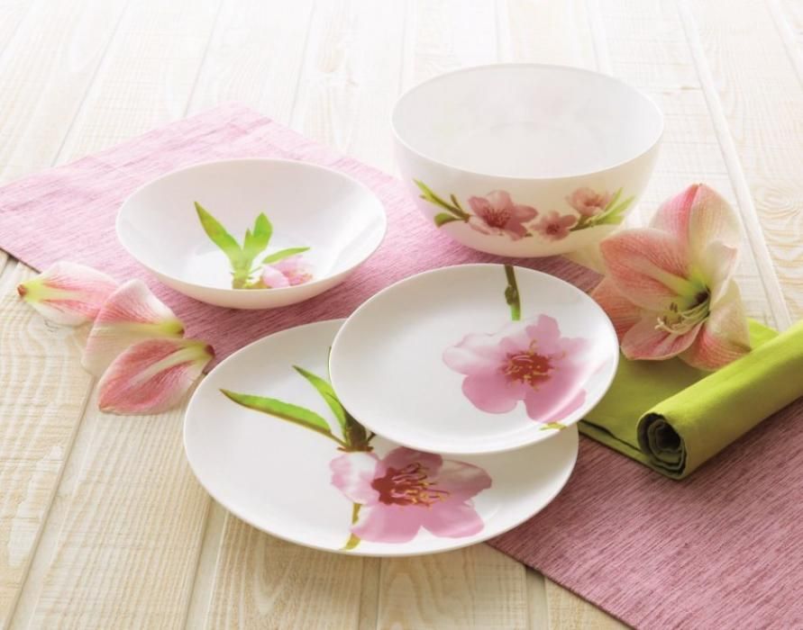 В столовый сервиз Luminarc WATER COLOR входят 19 предметов: обеденные и десертные тарелки, глубокие тарелки и салатник. Яркий цветочный акцент в виде лилий освежает вид обычной посуды и может превратить стандартный ужин в праздничное мероприятие. Благодаря термостойкому стеклу Luminarc WATER COLOR можно мыть в посудомоечной машине. Привнесите весеннюю свежесть за свой стол.
