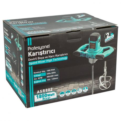 Будівельний електричний міксер ASR802 призначений для якісного змішування будівельних сумішей, клею, розчинів, фарб та інших в’язких матеріалів. Потужний двигун 1800 Вт забезпечує надійну та стабільну роботу навіть при інтенсивному використанні. Швидкість обертання без навантаження становить 0–850 об/хв, передбачене 6-ступеневе регулювання швидкості для зручного налаштування під різні типи матеріалів. У комплект входить мішалка, що з'єднується (в розібраному вигляді). Працює від мережі 230 В / 50 Гц, оснащений європейською вилкою з двома круглими контактами. Поставляється в кольоровій коробці, у комплекті інструкція та аксесуари.