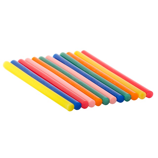 Клеевые стержни - цветные, изготовлены из пластичного термоплавкого клея - этиленвинилацетата, безопасного для здоровья.