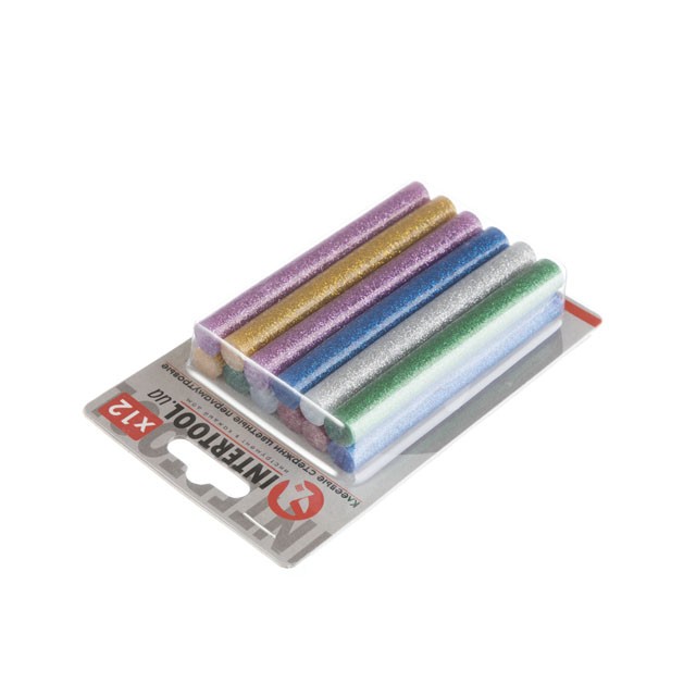 Комплект цветных перламутровых клеевых стержней 11.2мм*100мм, 12шт INTERTOOL RT-1029