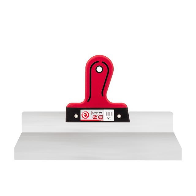 Шпатель обладает усиленной двухкомпонентной ручкой из резины и пластика. Она имеет эргономичную форму, комфортно лежит в руке и обеспечивает надежный захват.