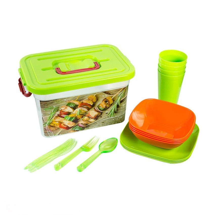 Комплектация Тарелка, миска, стакан, нож, ложка, вилка