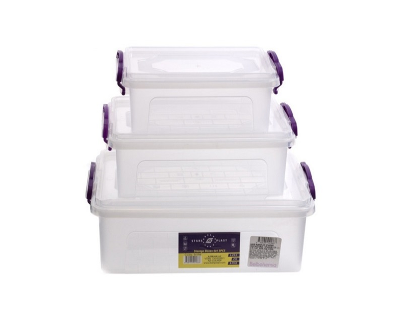 НАБОР ГЕРМЕТИЧНЫХ ПРЯМОУГОЛЬНЫХ КОНТЕЙНЕРОВ С ЦВЕТНОЙ КРЫШКОЙ (3 ШТ: V 800, 1400, 2300 МЛ)