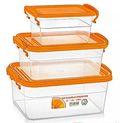 Набор пищевых контейнеров боксов Народный продукт 3шт ((0,85л + 1,6л + 3л) желтый