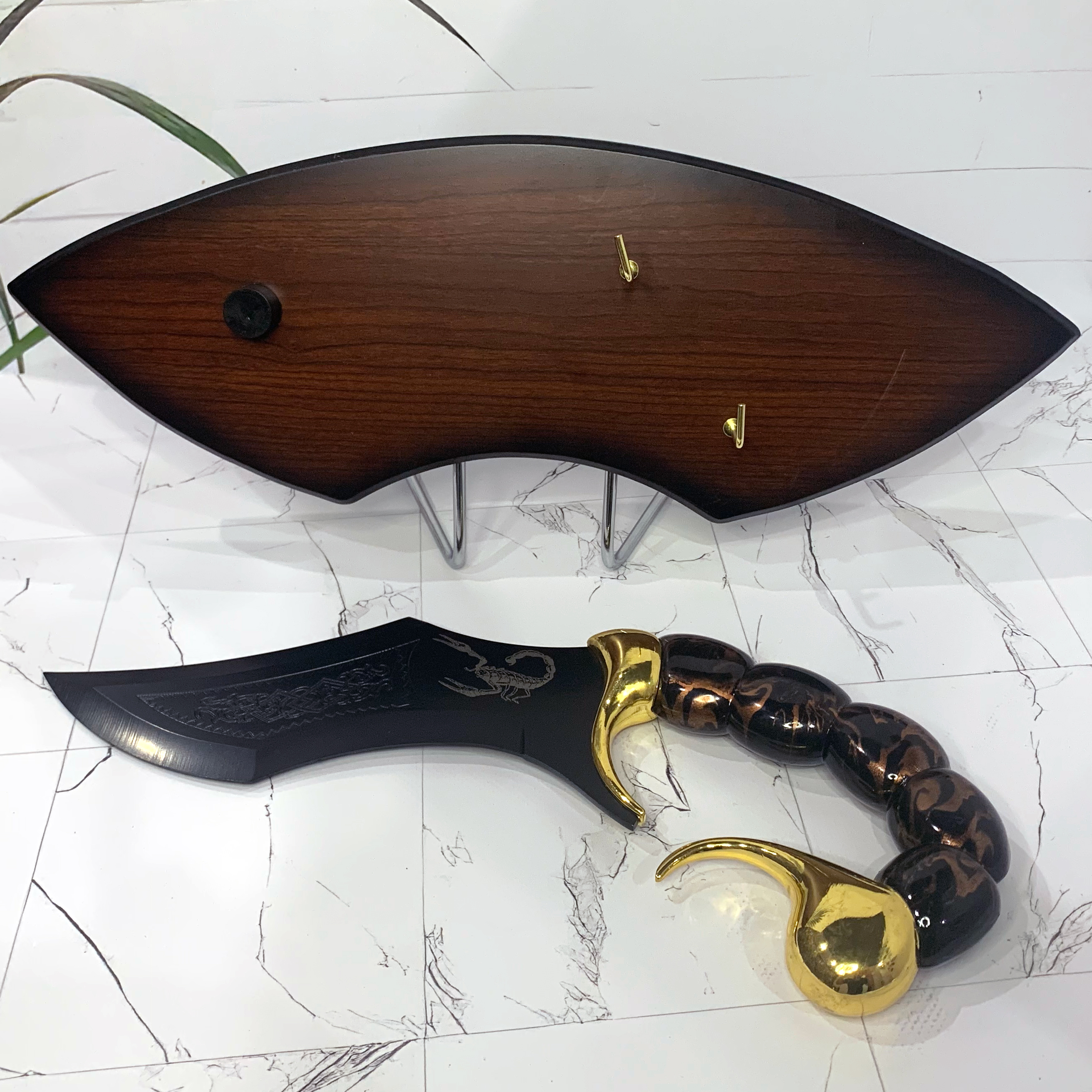 Подставка: деревянная, стилизованная под форму кинжала, с металлическими держателями