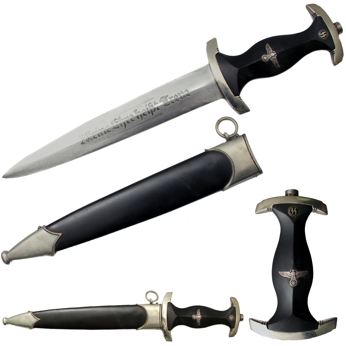 Реплика немецкого кинжала, стилизованного под историческое оружие. На клинке выгравирована фраза Alles für Deutschland, а рукоять украшена эмблемами. В комплект входит ножны с металлическими элементами. Подойдет для коллекционеров, любителей исторического антуража и реконструкторов.