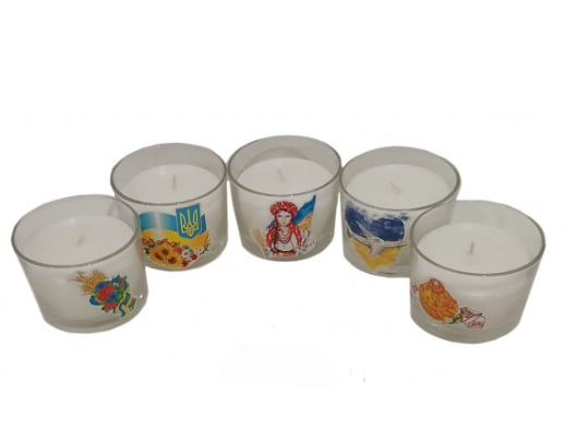 Ароматизированная свеча в стакане с патриотичным украинским дизайном — это тёплый символ поддержки, силы и национального духа. Свечи украшены узнаваемыми образами: жёлто-синий флаг, герб-трезубец, самолёт «Мрия», паляниця, пшеница - элементы, наполненные смыслом и любовью к Украине.