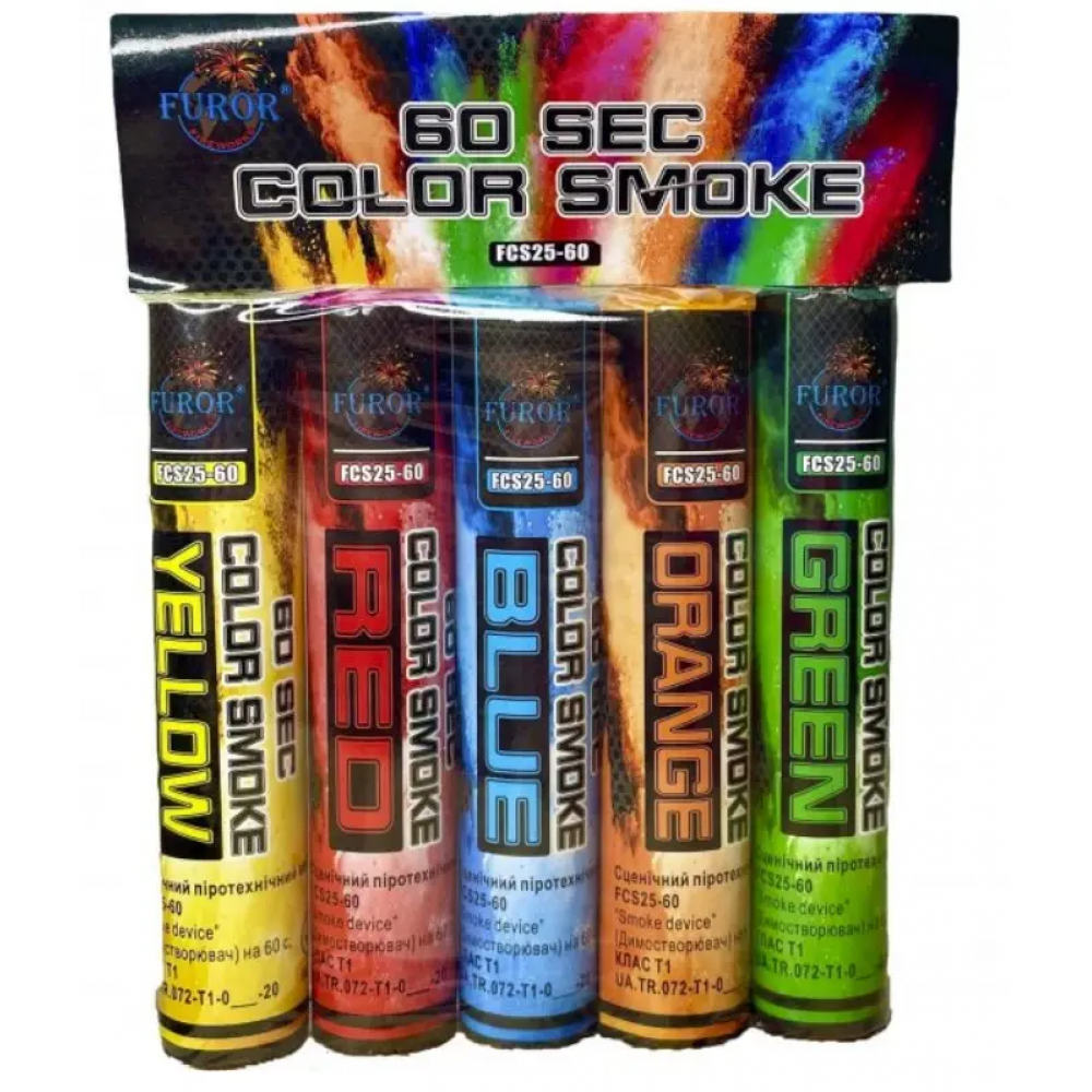 Не пачкает одежду, выделяет много насыщенного дыма в течении 60 секунд.