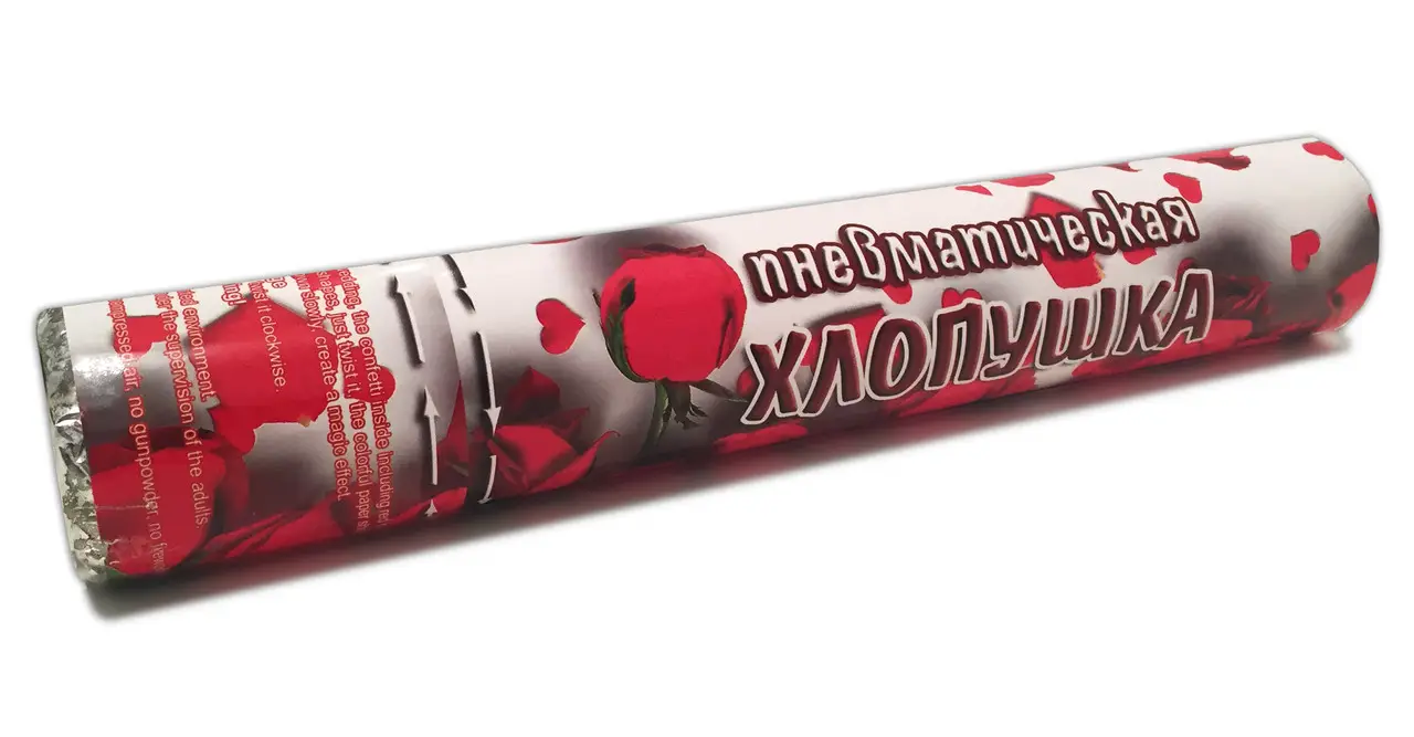 Хлопушка пневматическая "Розы " 80см, 35г, наполнение лепестки роз из ткани Unison (0893-80)