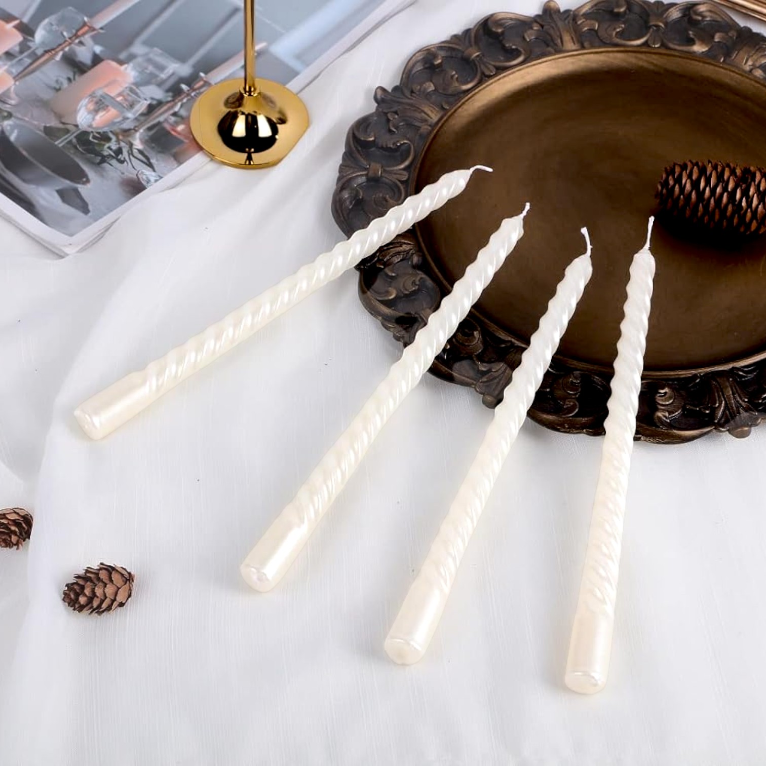 Погрузитесь в атмосферу уюта и элегантности с нашим набором из 12 белых перламутровых свечей. Каждая свеча длиной 25 см с утонченным дизайном и мягким перламутровым блеском добавит изысканности в любое пространство.