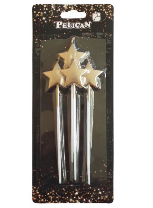Набор свечей для торта "Звездочка на палочке", золото 4шт/уп Золотой Pelican (868611)