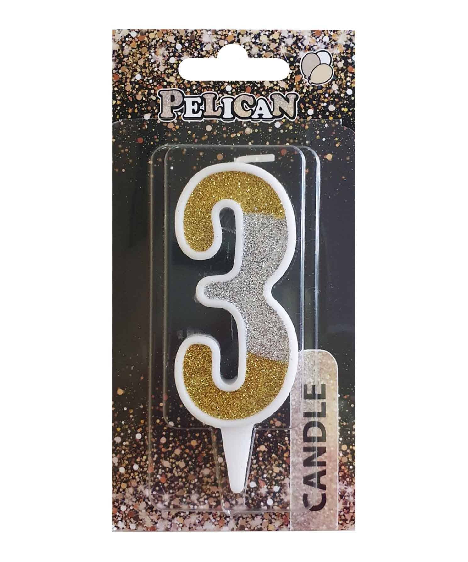 Свеча для торта Pelican "3" СЕРЕБРЯНО-ЗОЛОТАЯ 7см Разноцветный Pelican (867033)