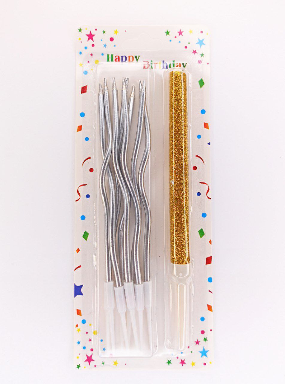 Набор свечей для торта "Коктейльные 8шт и холодный фонтан 1шт", серебро Серебряный Unison (Y-8 silver)