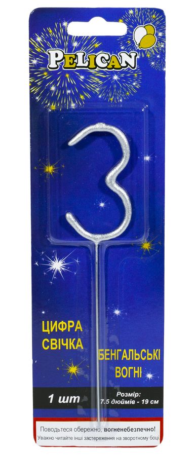Свеча цифра бенгальская Pelican, "3" СЕРЕБРО Серебряный Pelican (860023)