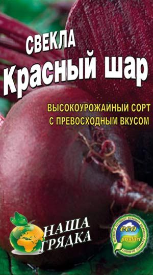 Свекла Красный шар Раннеспелый, урожайный сорт столовой свеклы. Вегетационный период от всходов до технической спелости составляет 95-105 дней. Корнеплоды округлые, массой 250 — 300 г. Мякоть тёмно-красная, с Красный шарвым оттенком, сладкая, нежная и очень сочная. Сорт свеклы Красный шар холодоустойчив, рекомендуется для получения летнего и осеннего урожая, относительно устойчив к гнилям, имеет непревзойдённые вкусовые качества. Используется для потребления в свежем виде и хранения. Семена свеклы прошли предпосевную обработку и соотвествуют ГОСТу