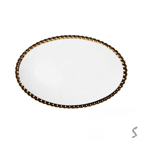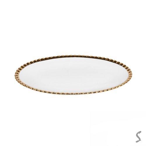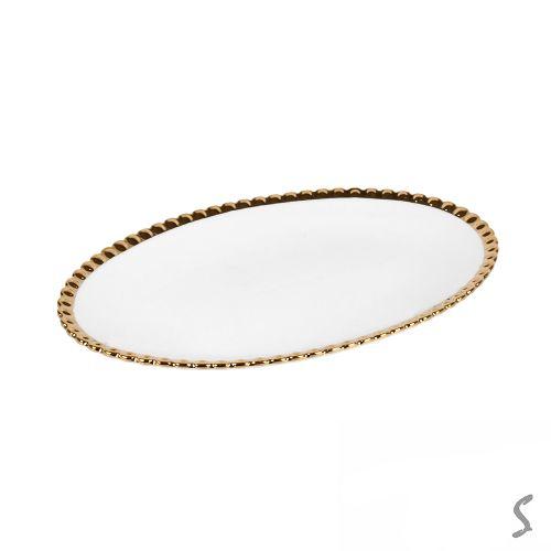 Фруктовница фарфор на бамбуковой подставке "White Classic" 12" (31*17*12см)