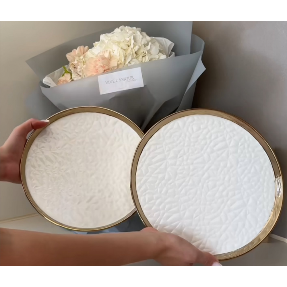 Блюдо-тортовница фарфоровая 25см с колпаком Мраморная Роскошь, цвет — черный мрамор