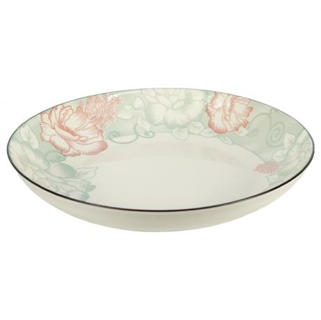 Керамічна тарілка універсального призначення діаметром 20,5 см та висотою 5,5 см, об’єм 500 мл. Виготовлена з міцної кераміки кремового відтінку та декорована ніжним квітковим візерунком у пастельних тонах по краю. Легко поєднується з повсякденним і святковим сервіруванням. Підходить для подачі супів, салатів, пасти, каш і других страв. Оптимальний вибір для дому, кафе та ресторанів.