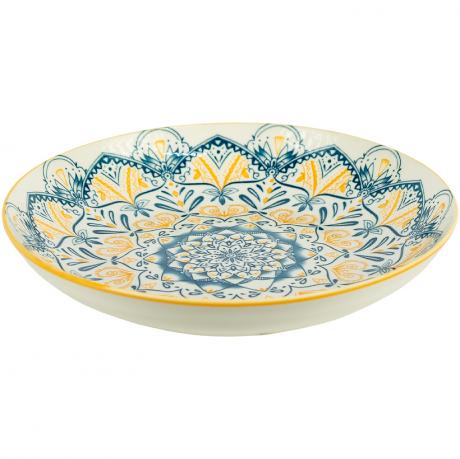 Керамічна тарілка з візерунком — практичний і стильний елемент сервірування столу. Діаметр 20,5 см, висота 5,5 см, об’єм 500 мл. Прикрашена оригінальним орнаментом, що додає вишуканості та робить подачу страв більш ефектною. Підходить для супів, пасти, рагу та інших гарячих страв. Виготовлена з міцної кераміки, стійка до високих температур і легко миється. Ідеальний вибір для щоденного використання та святкових обідів.