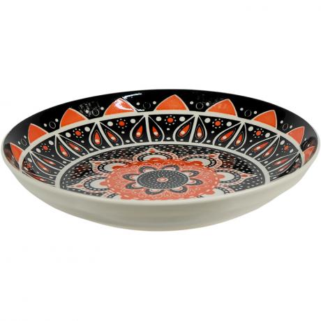 Керамічна тарілка з візерунком, діаметр — 20,5 см, висота — 5,5 см, об’єм — 500 мл. Виготовлена з міцної кераміки, стійка до сколів і легко миється. Підходить для подачі гарячих і холодних страв, десертів або салатів. Елегантний візерунок додає столу святкового та стильного вигляду, чудово підходить для щоденного й урочистого сервірування.
