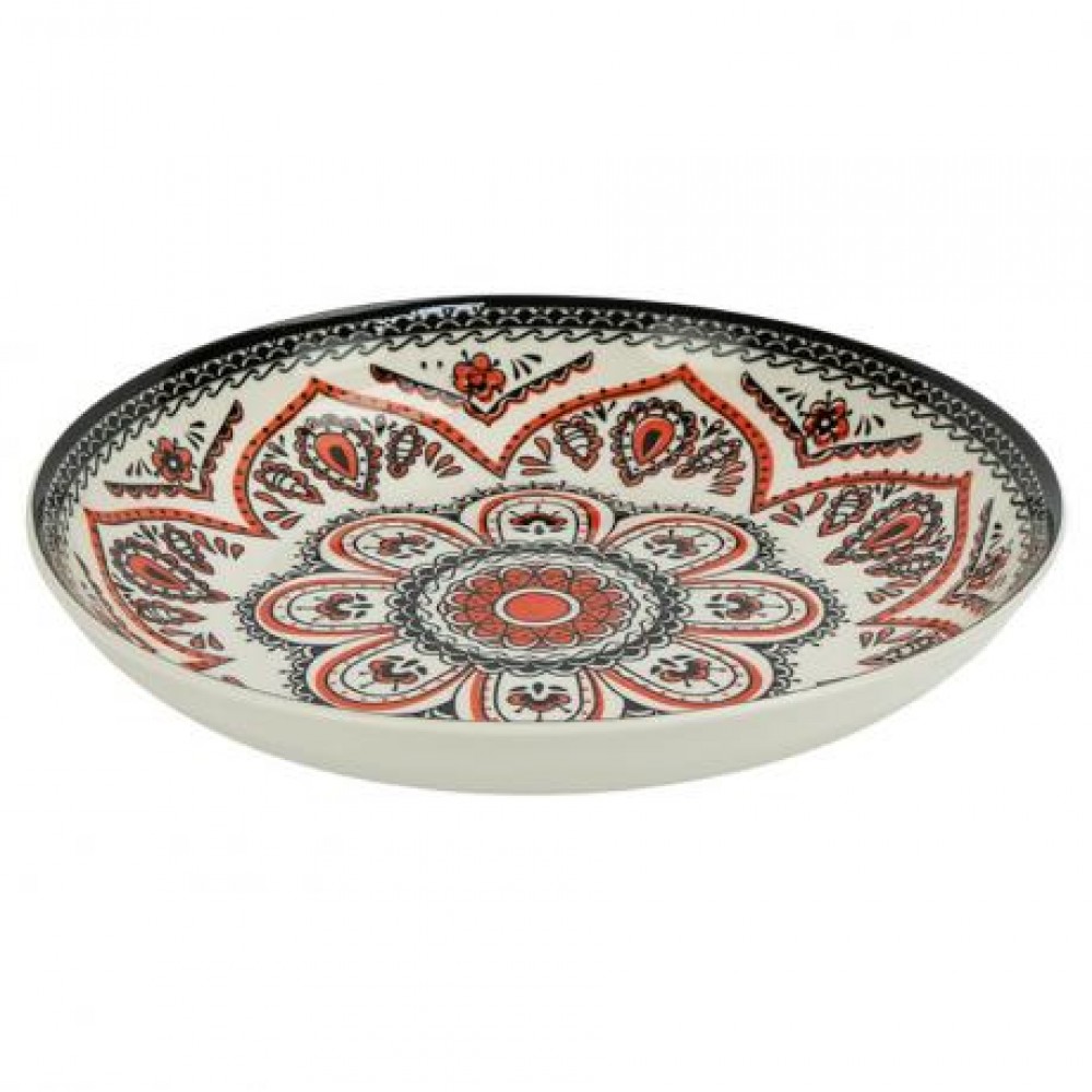 Діаметр 20,5 см, висота 5,5 см, об’єм 500 мл. Ідеально підходить для подачі гарячих страв, салатів чи десертів, додаючи сервіруванню виразності та колориту.