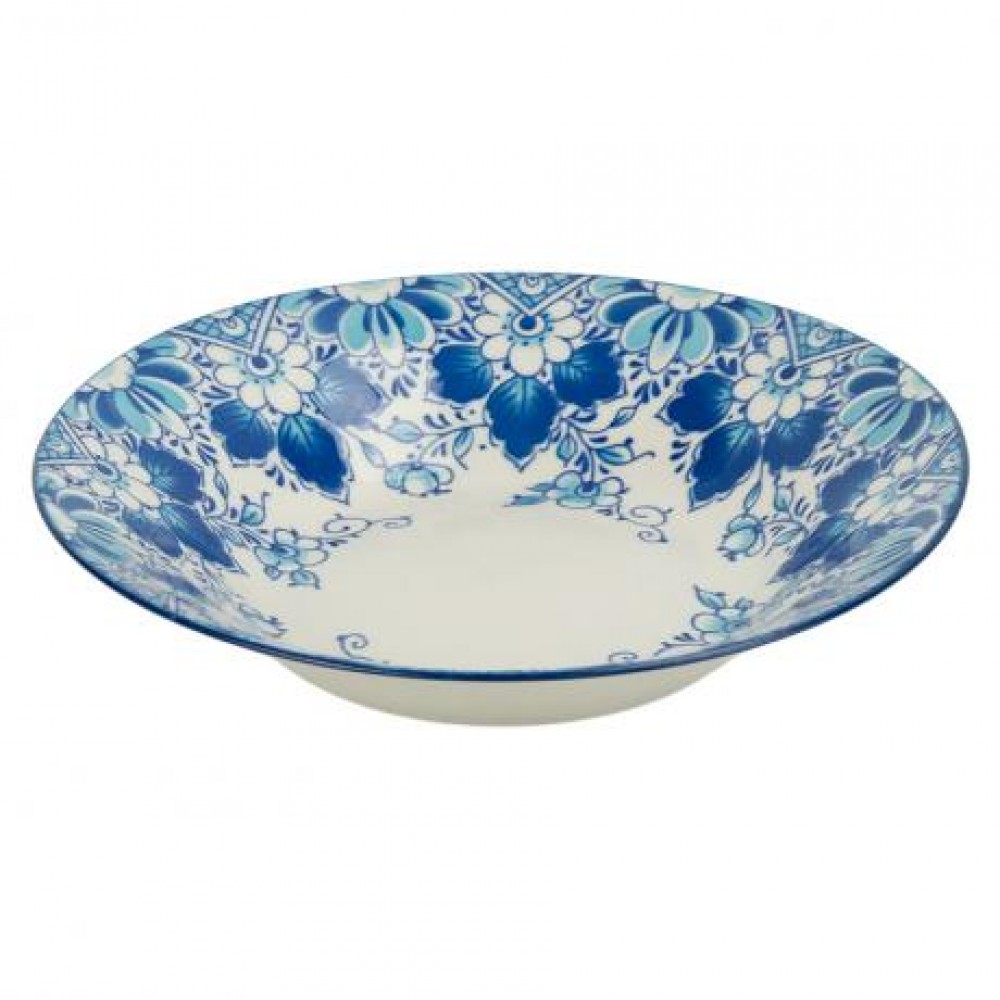 Супова тарілка D20×6 см, об’єм 500 мл, з класичним квітковим орнаментом у відтінках синього та бірюзового кольору. Декор нагадує гжельський розпис, створюючи відчуття легкості та свіжості. Білий центр підкреслює витончений візерунок по краю, роблячи подачу страв особливо естетичною. Тарілка ідеально підходить для супів, борщів, крем-супів, пасти, різотто, овочевих та м’ясних рагу, а також для сніданків: каш, граноли, фруктів із йогуртом.