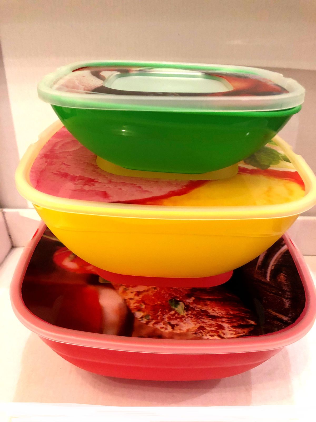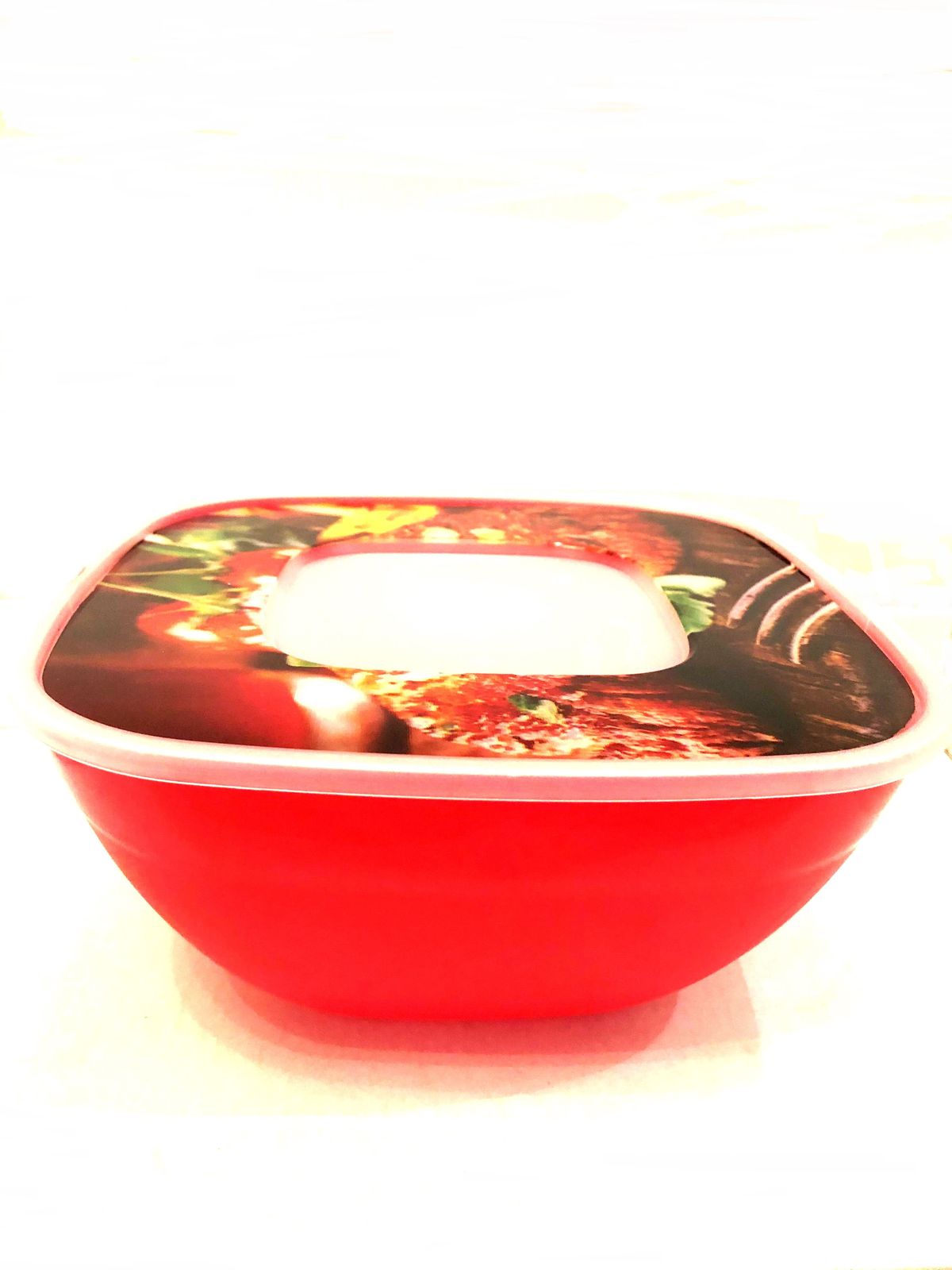 Миска изготовлена из высококачественного пластика и предназначена для повседневного использования. Изделие, оснащенное крышкой с декором, очень функциональное, оно пригодится на кухне для самых разнообразных нужд: в качестве салатника, миски, тарелки.