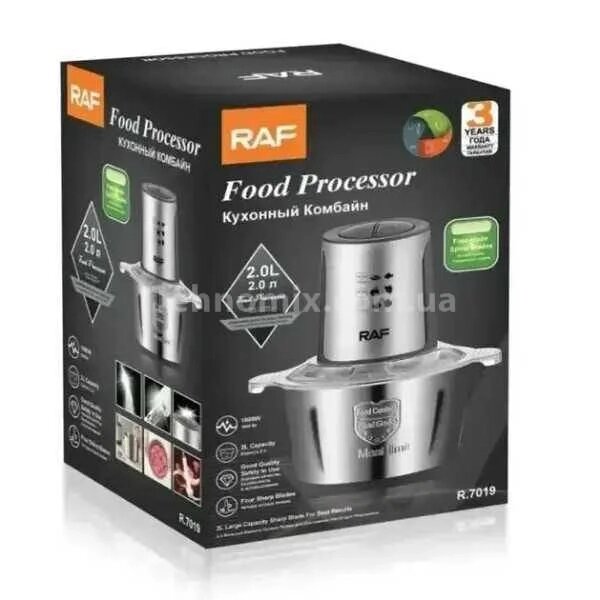 Кухонный измельчитель RAF R.7019 2,0л 1000 Вт 2 скорости мясорубка чоппер кухонний электрический с металлической чашей