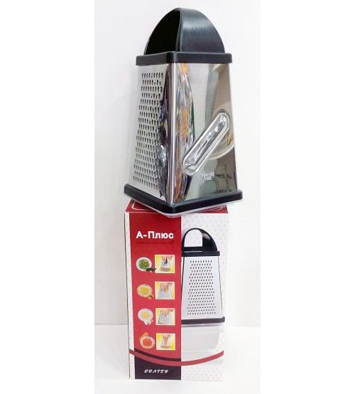Терка виготовлена з нержавіючої сталі високої якості, ручка і вставки з пластика. Цей метал не вступає в реакцію з їжею під час експлуатації, а значить не міняє її смак і запах. Товар є міцним і довговічним. Легко очищається навіть в прохолодній воді. Має сучасний дизайн з яскравими елементами. Така терка для овочів оснащена зручною ручкою з міцного пластика. За допомогою такої кухонної терки легко натерти і нашаткувати будь-який продукт. Стане багатофункціональним помічником, завдяки наявності 4-х сторін з різними за формою і розміром лезам для кожної хазяйки і на будь-якій кухні їдальні, кафе або ресторану. Съэкономит місце на кухні. Терка для продуктів прекрасно підходить для устаткування громадського харчування.