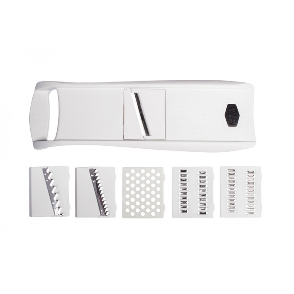 Багатофункціональна овочерізка 6 в 1: 6 змінних лез для нарізки, шаткування та подрібнення. Легко нарізати скибочками овочі: картопля, огірки, морква тощо.