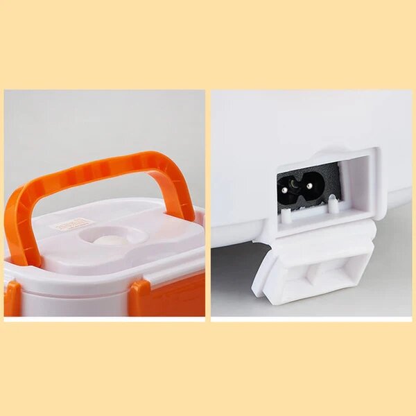 Ланч-бокс имеет два отделения, в одно из которых вставляется контейнер с герметически закрывающейся крышкой. Вы можете использовать его отдельно для фруктов, печенья и т.п. или налить в него суп или бульон. Для разогрева пищи в ланч-боксе вставьте в гнездо корпуса сетевой шнур. Перед разогревом рекомендуется открыть крышку контейнера с жидким блюдом, а так же вынуть пробку в крышке ланч-бокса для того, чтобы через отверстие выходил пар. Пища разогревается в течение 2-5 минут и благодаря термоизоляционному пластику корпуса сохраняет свою температуру до двух часов. Термо Ланч-бокс Electric Lunch Box - автоматически подогреваемый пищевой контейнер. Вы можете завтракать или просто перекусить прямо в автомобиле или в любом другом месте. Вы просто втыкаете Lunch box в розетку и ваш обед за считанные минуты подогревается. Вам больше не нужно возить с собой объемные пищевые термосы, которые сохраняют тепло всего лишь до 3 часов. Теперь вкусная, горячая домашняя еда будет всегда с вами. Представленный ланч-бокс ― электрический, в нем легко можно подогреть любой обед. Это самое нужное и полезное приобретение для тех, кто любит путешествовать или для водителей...