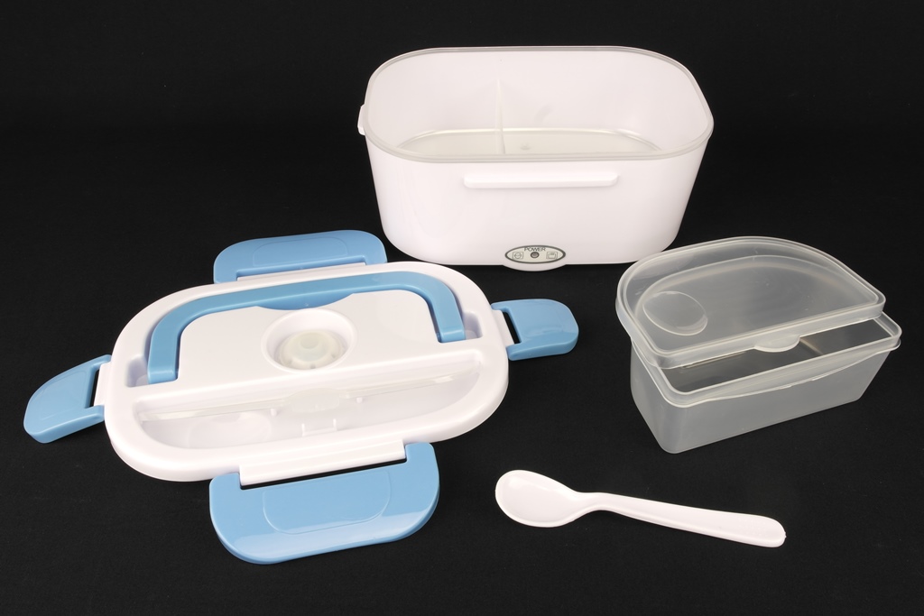 Ланч-бокс с подогревом имеет компактные размеры и даже в заполненном состоянии не будет весить более 2 кг; В любой момент Вы сможете подогреть пищу. Корпус ланч-бокса имеет специальную форму, которая работает как термос и сохраняет тепло в течение нескольких часов. Если же пища сильно остынет — воспользуйтесь встроенным электроподогревателем; Наличие двух контейнеров - сам ланч-бокс с подогревом и пластиковый контейнер внутри. Благодаря этому, Вы можете взять еды на две порции, или же положить туда первое и второе блюдо; Комплектуется пластиковой многоразовой ложкой. В крышке ланч-бокса есть отделение, где лежит ложка, туда же можно положить и другие принадлежности для еды; Необходимая посуда всегда будет с Вами, поскольку в качестве нее легко используются контейнеры; Наличие клапана выравнивания давления. В крышке есть вентиляционный клапан. Для разогрева продуктов предусмотрен воздушный клапан, который позволяет проходить воздуху в емкость, и в то же время пища сохраняет тепло; Возможность подогрева еды в ланч-боксе. Подключив ланч-бокс к 12 В вы сможете быстро подогреть остывшую еду за 5-20 минут; Чтобы еда не запарилась внутри бокса, можно несколько сдвинуть крышку для легкого проветривания; Еда всегда останется свежей внутри такого приспособления, потому что лишний пар уходит, и продукты не размякают.