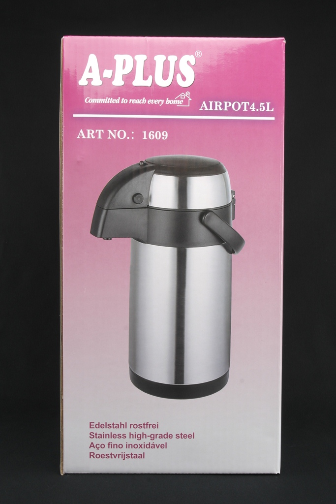 Высококачественный вакуумный термос. Предлагаем оптовые продажи термосов из нержавеющей стали. Надежные и практичные термосы надолго сохранят температуру Вашего напитка и порадуют Вас отличным качеством товара. Изготовлены из нержавеющей стали, которая не изменяет вкус напитка, не впитывает запах и безопасна для здоровья. Объем термоса - 4,5 л. Горячая вода в течении 12 часов.