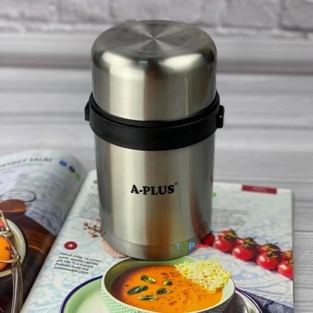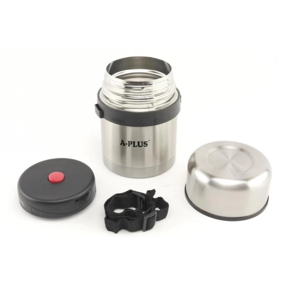 Корпус и колба термоса A-plus 1662 изготовлены из прочной высококачественной нержавеющей стали, которая не подвержена окислению и не влияет на вкус продуктов. Закрывается термос большой крышкой закруткой, которая сохранит продукты от проливания.