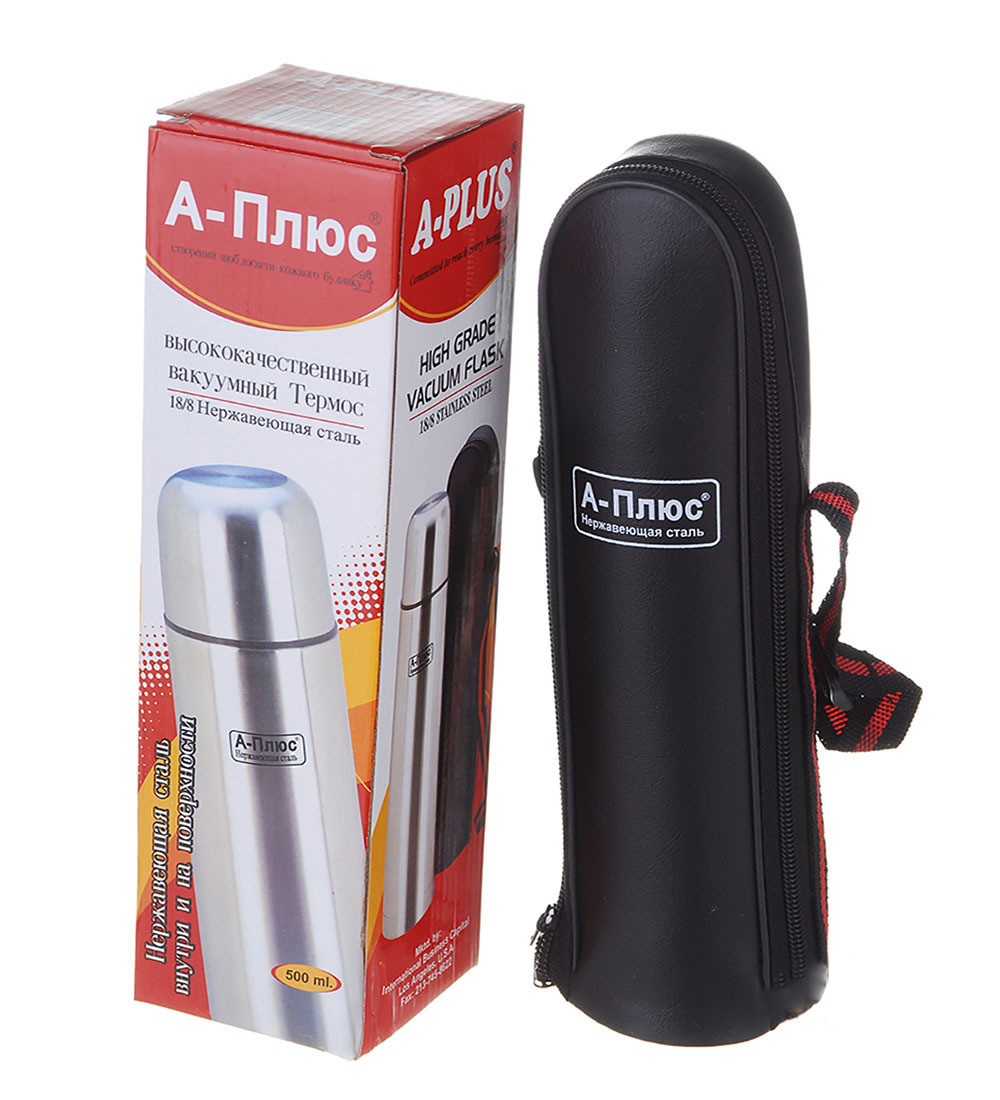 Термос А-Плюс - 1752 500 мл используется как, емкость для сохранения температурного режима жидкости. Благодаря термосу вы можете сделать себе прохладительный или горячий напиток и взять с собой на работу, в поездку, на природу. При этом вы сохраните не только вкусовые качества любимого напитка, но и необходимую температуру. Термос изготовлен нержавеющей стали. Имеет два шара, что обеспечивает высокие показатели по сохранению температуры в емкости. Красивый дизайн, только добавит вам удовольствие при применении термоса. Ко всему за счет того, что термос изготовлен полностью из нержавеющей стали он очень прочный и вы можете не боятся случайных падений термоса.