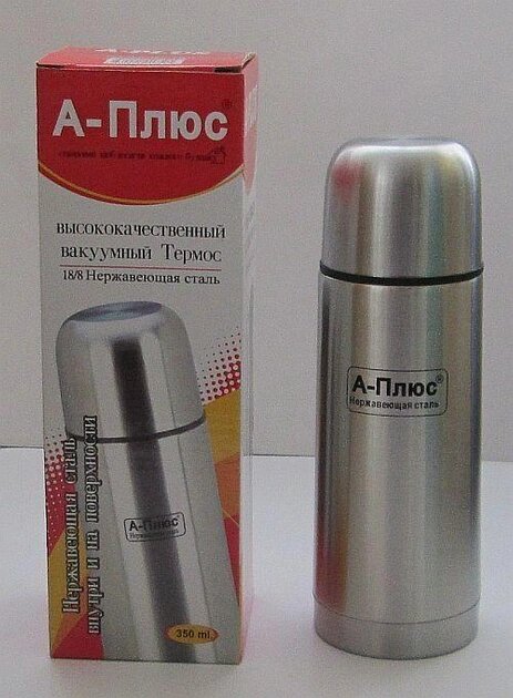 Термос А-Плюс - 1751 350 мл используется как, емкость для сохранения температурного режима жидкости. Благодаря термосу вы можете сделать себе прохладительный или горячий напиток и взять с собой на работу, в поездку, на природу. При этом вы сохраните не только вкусовые качества любимого напитка, но и необходимую температуру. Термос изготовлен нержавеющей стали. Имеет два шара, что обеспечивает высокие показатели по сохранению температуры в емкости. Красивый дизайн, только добавит вам удовольствие при применении термоса. Ко всему за счет того, что термос изготовлен полностью из нержавеющей стали он очень прочный и вы можете не боятся случайных падений термоса.