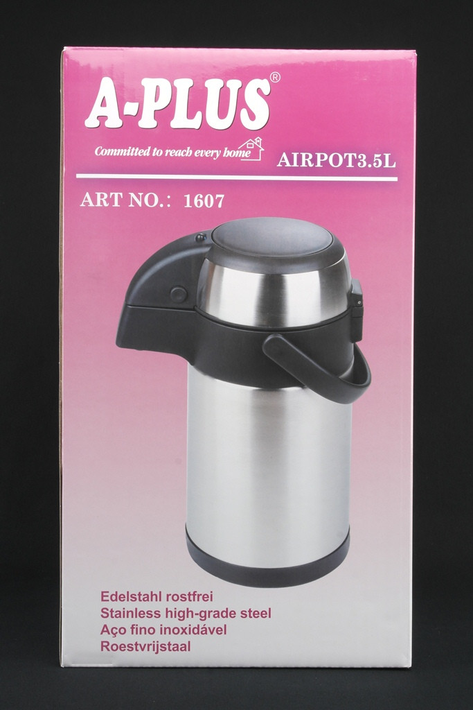 Высококачественный вакуумный термос. Предлагаем оптовые продажи термосов из нержавеющей стали. Надежные и практичные термосы надолго сохранят температуру Вашего напитка и порадуют Вас отличным качеством товара. Изготовлены из нержавеющей стали, которая не изменяет вкус напитка, не впитывает запах и безопасна для здоровья. Объем термоса - 3,5 л. Горячая вода в течении 12 часов.