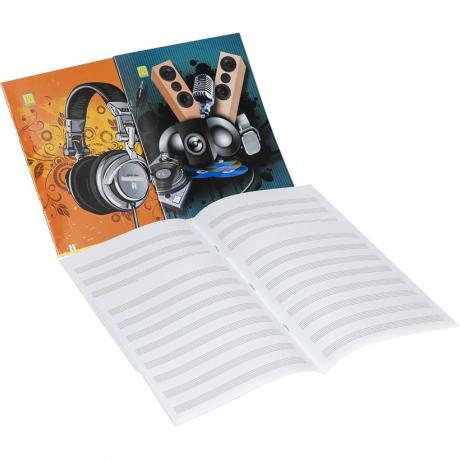 Формат А5, офсетний Папір 70г/м², 8 аркушів, обкладинка повнокольорова. Зошит для запису нот, для різних музичних інструментів