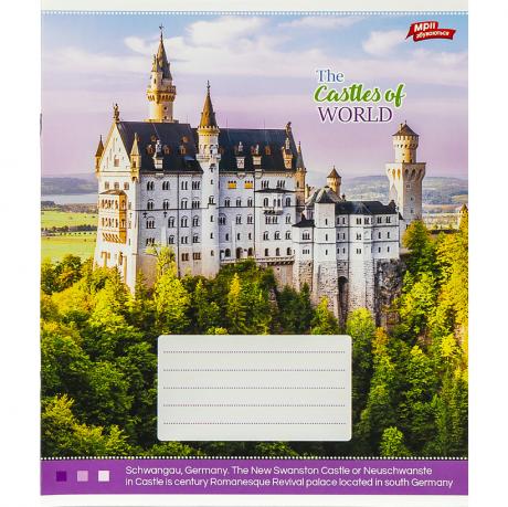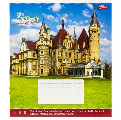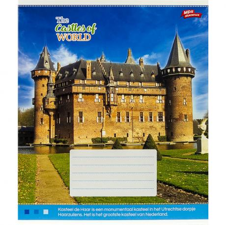 Зошит містить 12 аркушів з лінійкою. Упаковка включає 4 картинки з серії. Аркуші виготовлені з офсетного паперу Котлас, щільністю 65 г/м², з червоними полями. Обкладинка з повнокольорового картону має щільність 200 г/м².