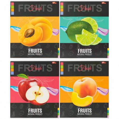 Зошит містить 48 аркушів з клітинкою. Білизна аркушів становить 100%, щільність паперу 65 г/м². Використовується офсетний папір Котлас з червоними полями. Обкладинка виконана з повнокольорового картону, щільність 200 г/м². Упаковка містить 4 картинки з серії.