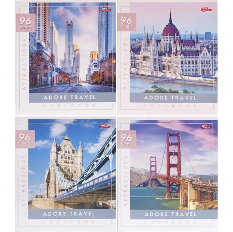 Зошит містить 96 аркушів у клітинку. Білизна аркушів 100%, щільність 65 г/м², виготовлений з офсетного паперу Котлас з червоними полями. Обкладинка з повнокольорового картону, щільність 200 г/м², виготовлена з імпортних матеріалів. Упаковка містить 4 картинки з серії.