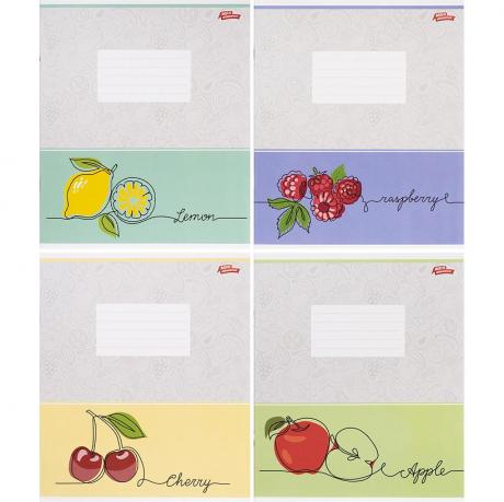 Упаковка містить 4 зошити з серії. Аркуші мають білизну 100% і щільність 65 г/м², виготовлені з офсетного паперу Котлас з червоними полями. Обкладинка з повнокольорового картону з імпортних матеріалів, щільністю 200 г/м².