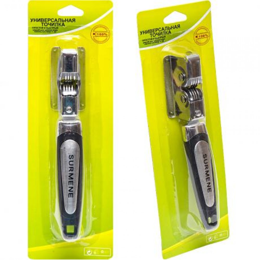 Зручний варіант точила для побутової заточування ножів, сокир, ножиць. Для цього точилку потрібно зручно розташувати на рівній поверхні і, притримуючи її за рукоядки, провести ножем між точильний пластинами. Розмір 18х3 см