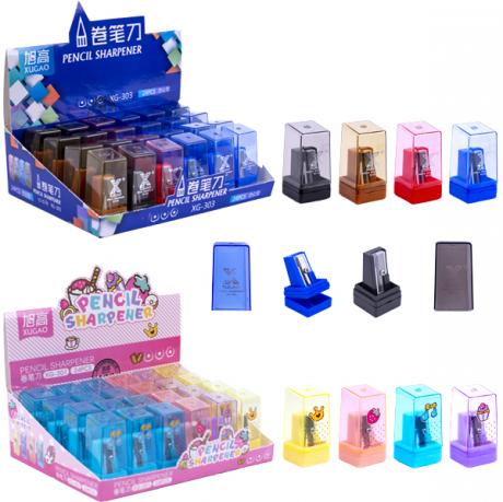 Точило з контейнером під 1 олівець. Прозоре. Кольори в асортименті. В упаковці 24 штук. Розмір точилки 5,5*2,3*2,3 см